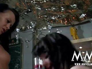 Reife Lehrerin mit langen Nägeln nimmt einen langen Schwanz in den Mund